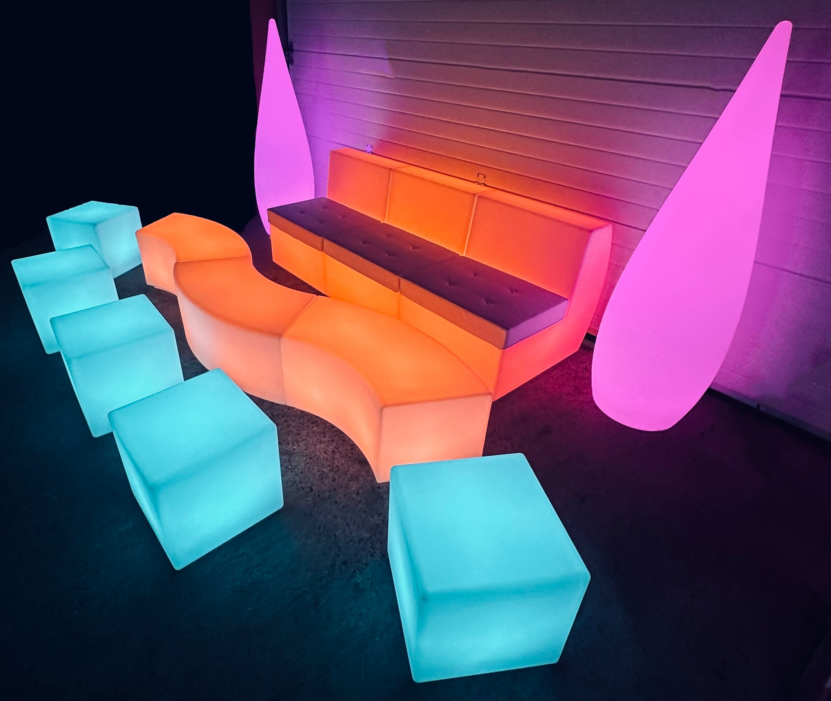 Créez un espace LED complet pour transformer vos événements en expériences visuelles immersives. Notre mobilier lumineux s'assemble pour créer des zones entièrement illuminées, modernes et spectaculaires.